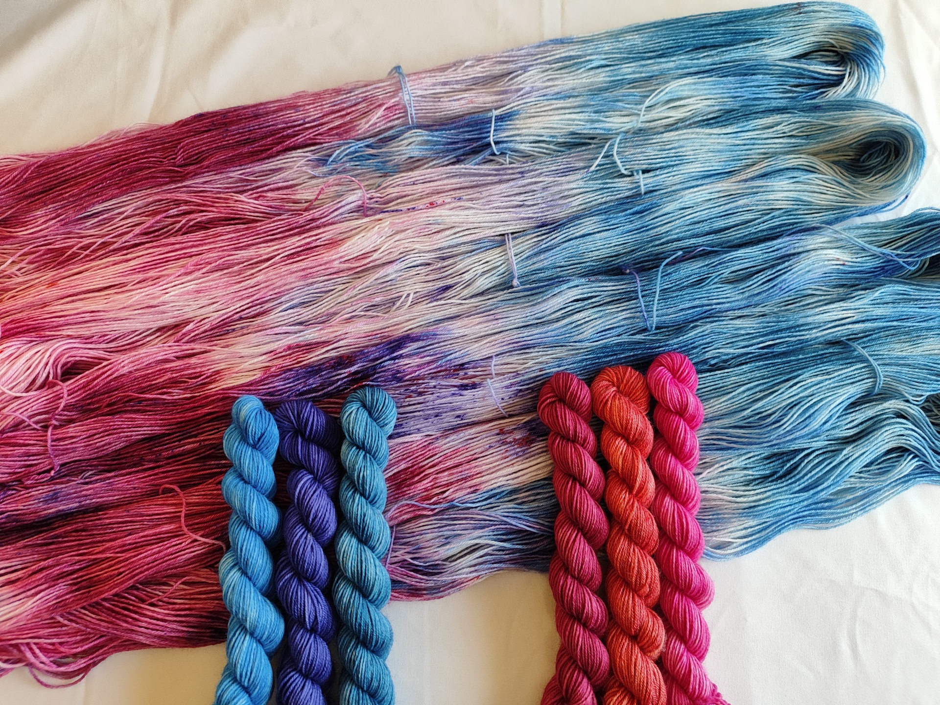 As meadas de 100 gr serão todas idênticas, as minis terão a cor correspondente a cada uma das cores escolhidas.