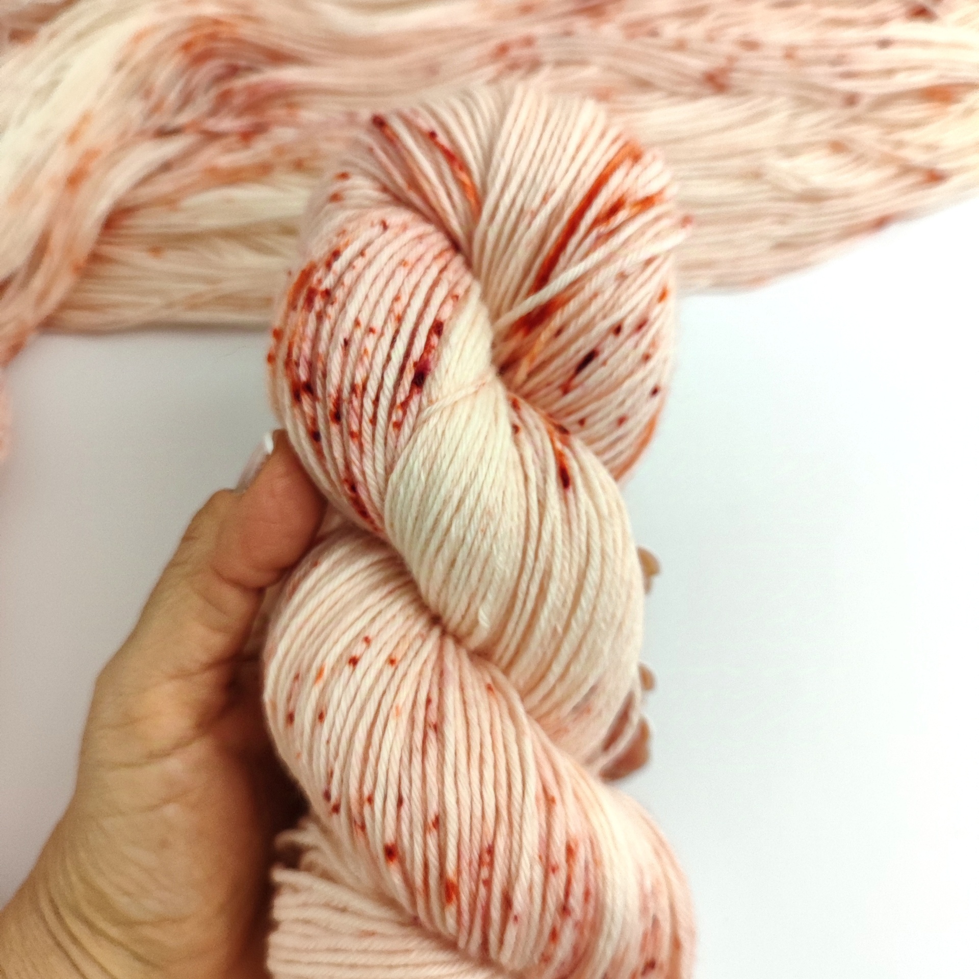 Pintado à mão, significa exactamente isso. Sem máquinas ou processos mecânicos envolvidos. Cada meada é única e pode ser considerada uma obra de arte.